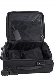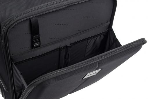 Praktischer Trolley aus Nylon und Details aus Rindsleder. Zahlreiche Fächer und ein TSA-Zahlenschloss machen zu einem optimalen und sicheren Begleiter für Reisen.