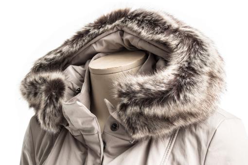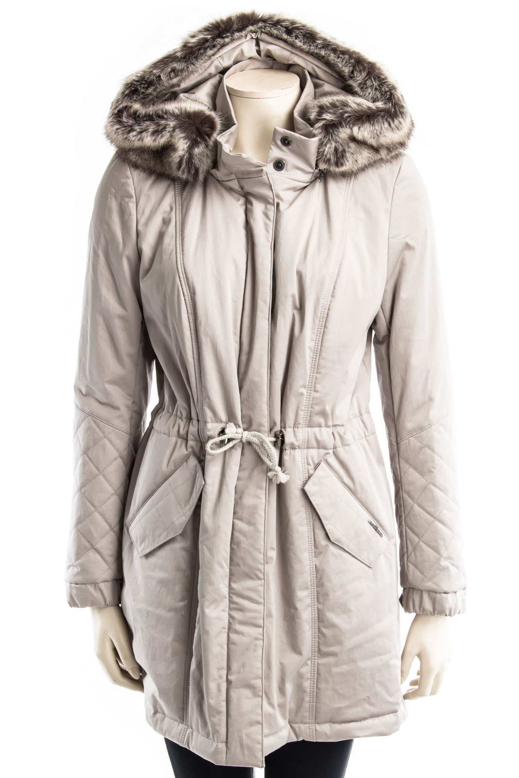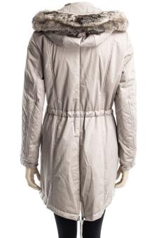 Modischer Parka mit Tunnelzug in der Taille und Fellkapuze.