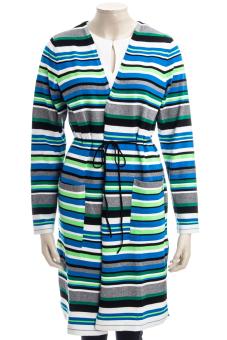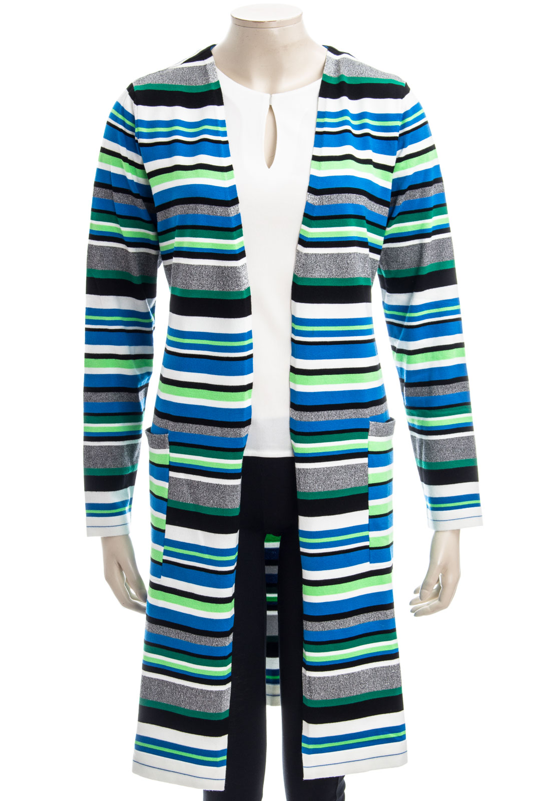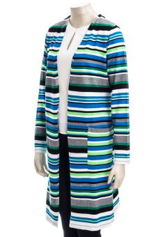 Lang geschnittener, gestreifter Cardigan mit Taillenband