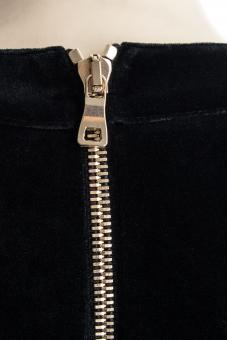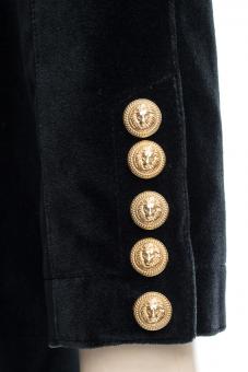 Modisches Kleid aus exklusivem Samt mit BALMAIN Typischen Schulterpolstern und goldfarbenden Knöpfen.