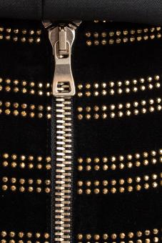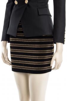 Kurzer, schmal geschnittener Rock mit goldfarbenden Nieten.