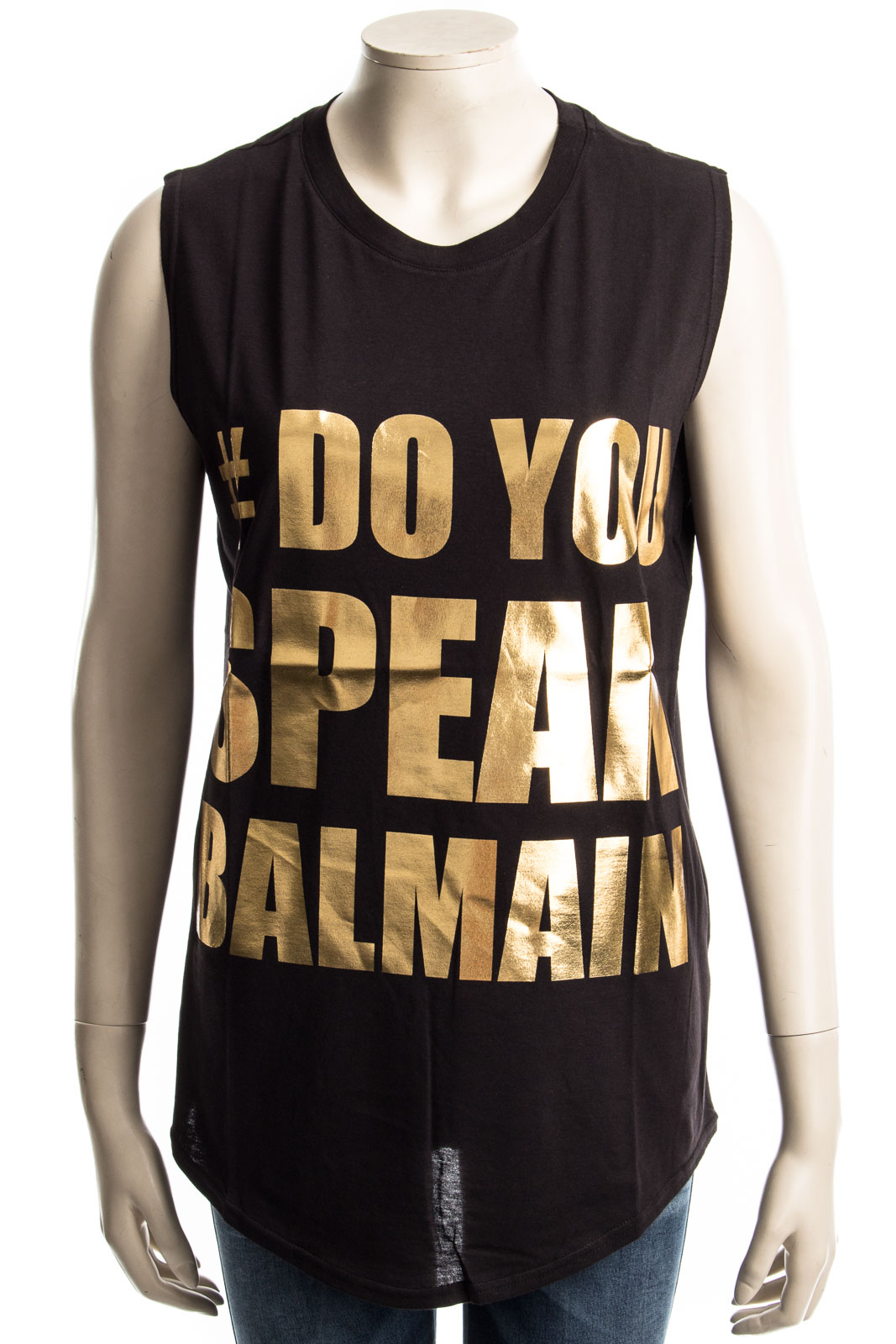 Dieses Top passt sich jedem exklusiven Outfit mit seiner goldfarbenden Schrift an.
