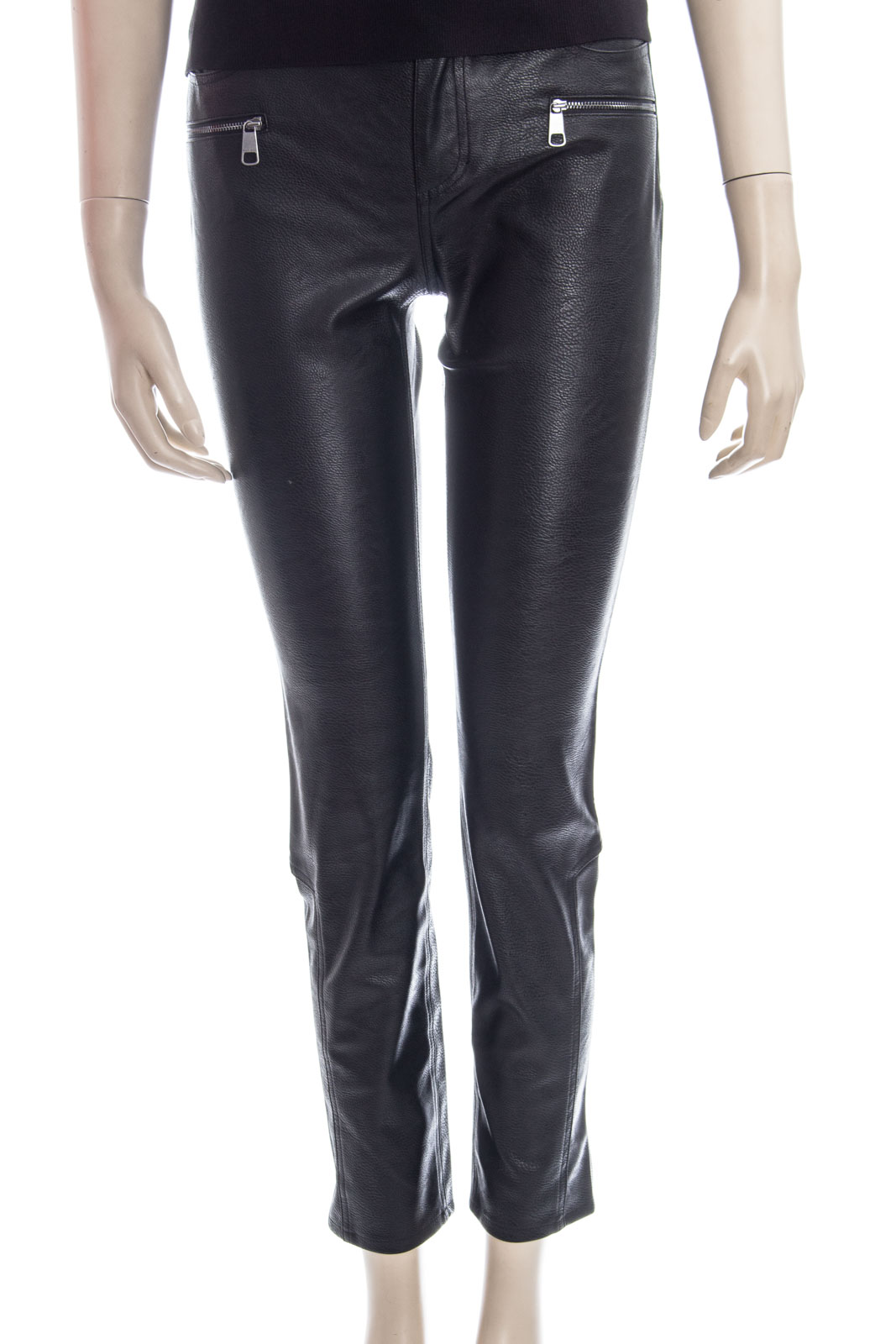 Slim-Fit Hose aus Kunstleder mit Reißverschluss-Details