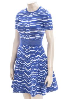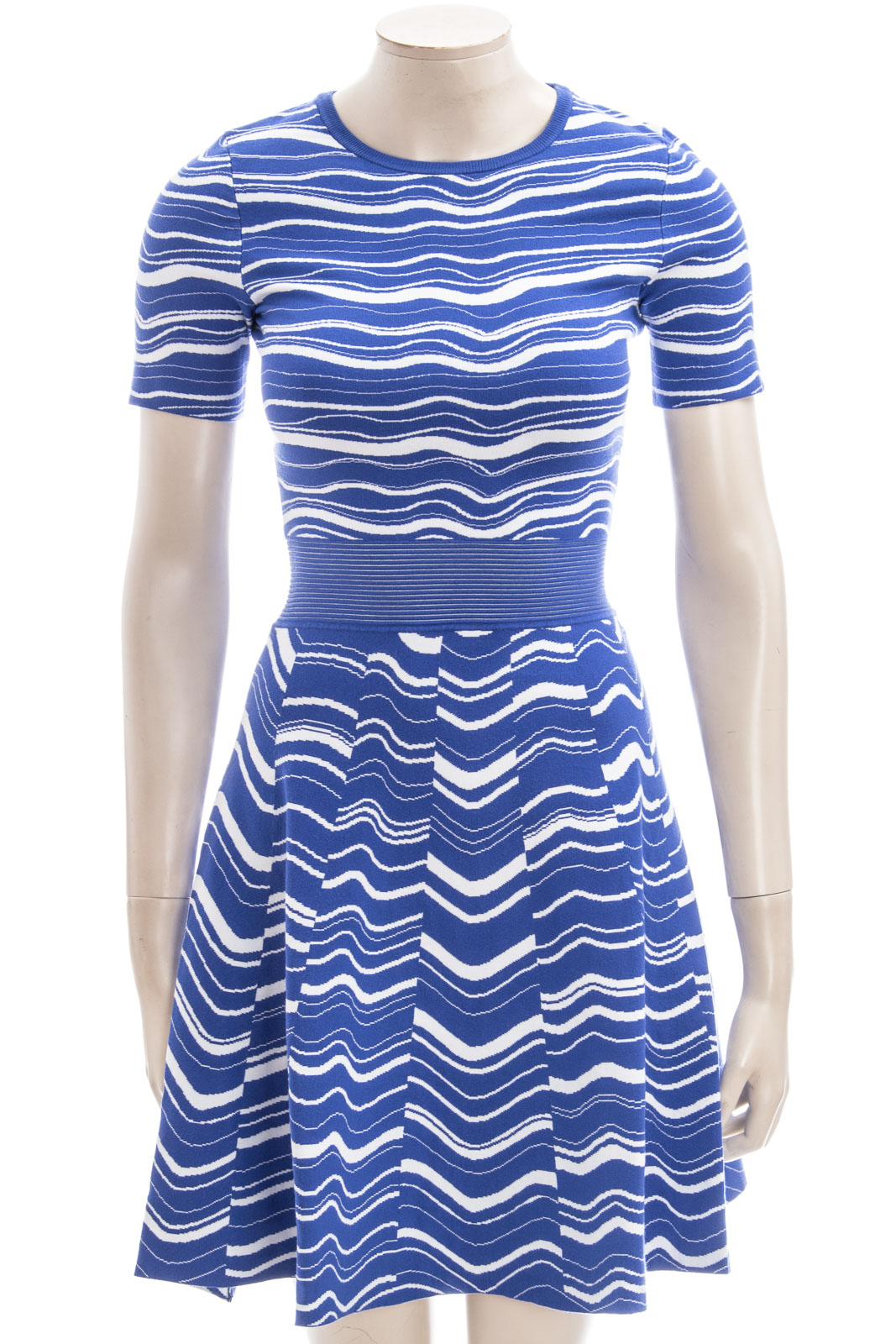 Zweifarbiges Jacquard-Strickkleid mit strukturiertem Bund