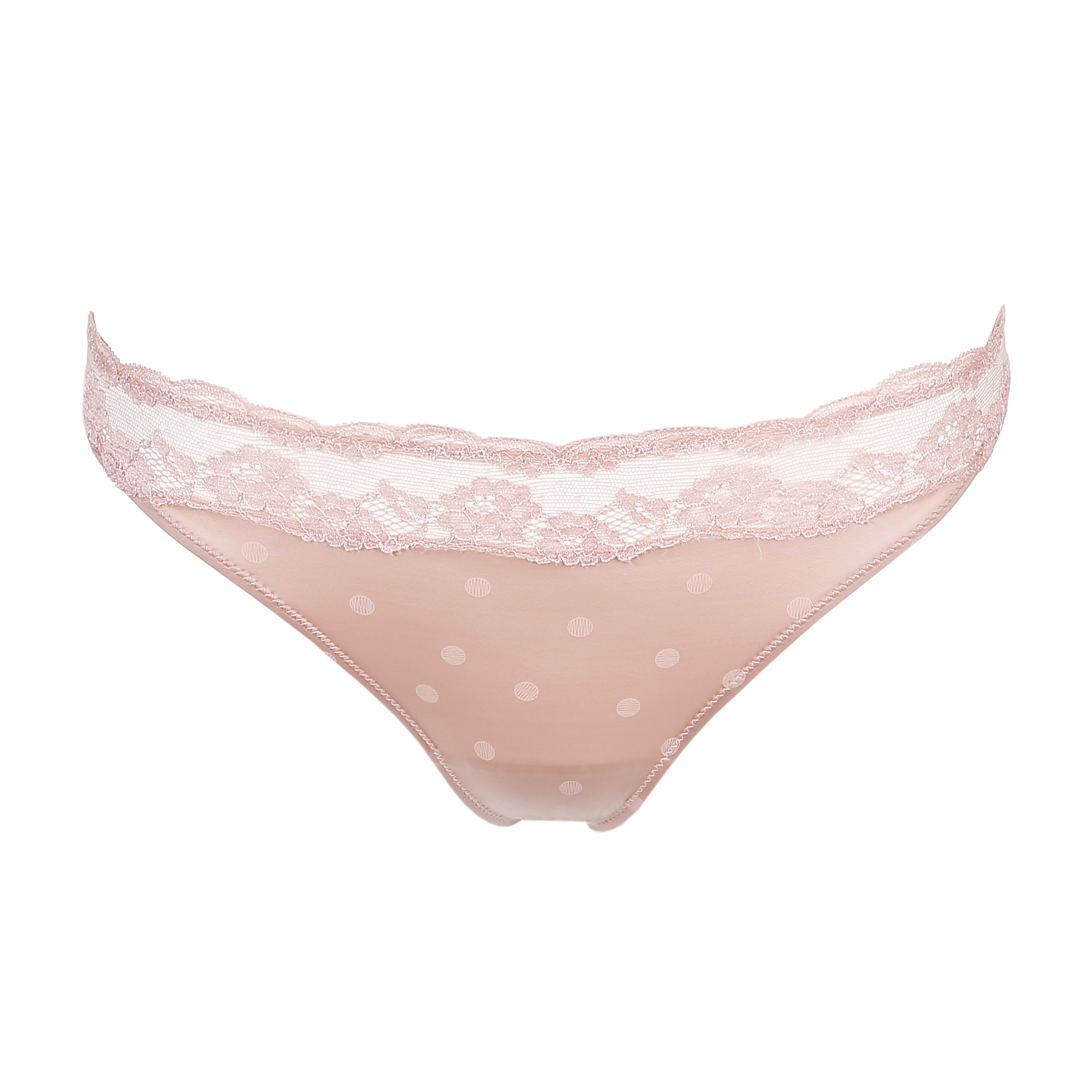 String mit Spitzeneinsatz und Pünktchen-Print.