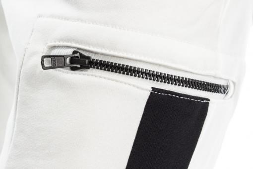 Schmal geschnittene Sweathose mit Reißverschluss an einem Hosenbein.