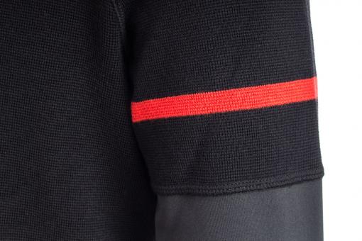 - Mit Einsätzen aus glattem Material, Kontrastive Streifen an den Ärmelpartien