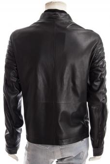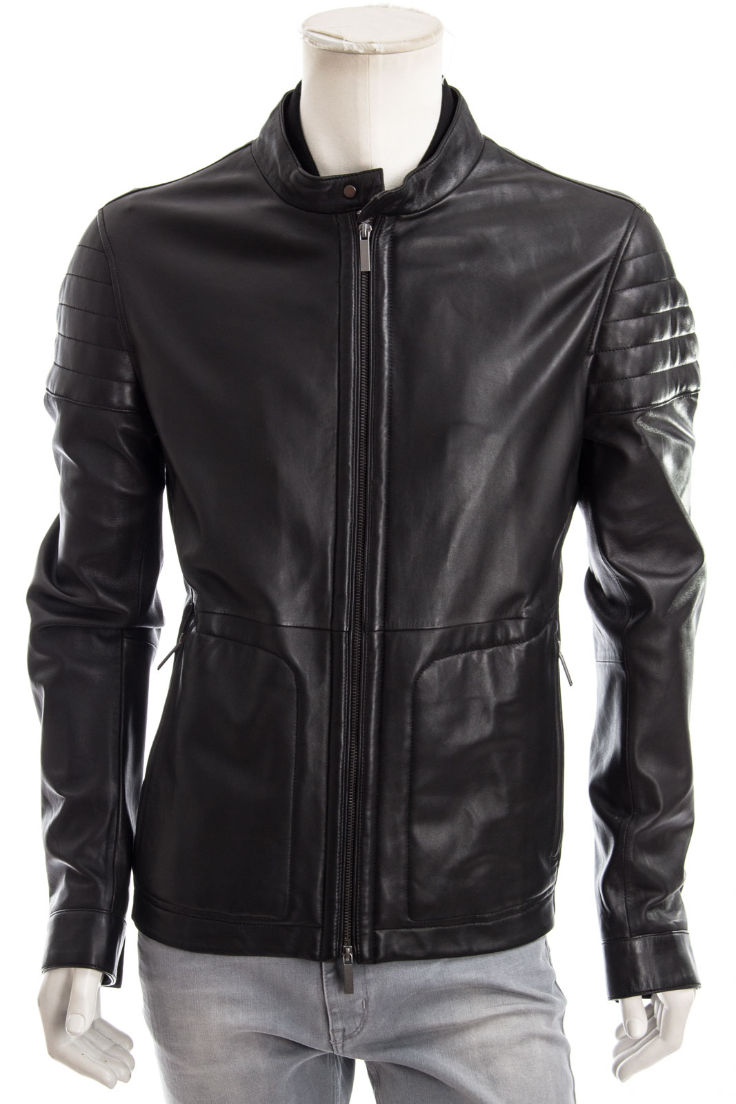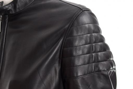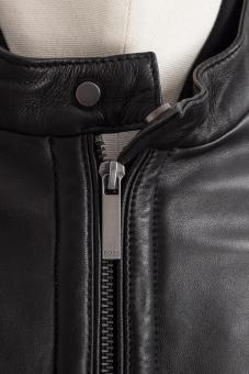 Schmall geschnittene Lederjacke im dezenten Biker-Look.