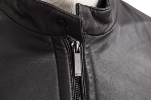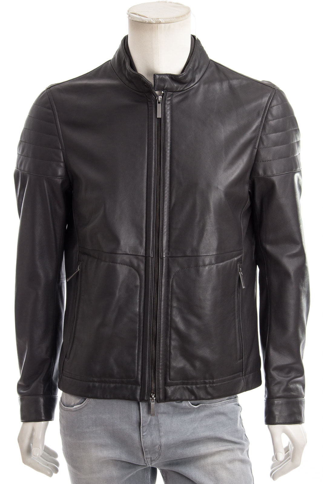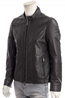 Schmall geschnittene Lederjacke im dezenten Biker-Look.