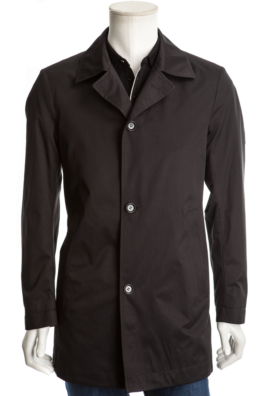 Kurzmantel aus einer wasserabweisenden Polyesterkomposition mit Baumwollanteil.