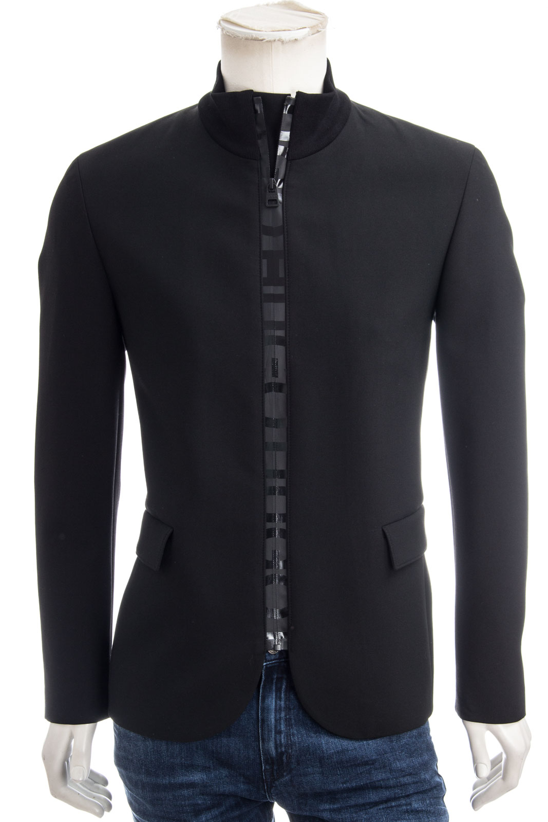 Gerade geschnittenes Sakko mit Logo-Schriftzug am Reißverschluss.