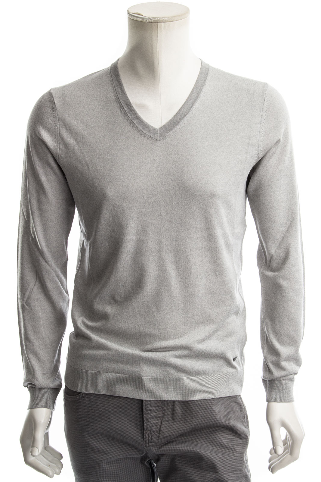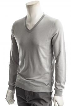 Schmall geschnittener V-Ausschnitt Pullover mit einem Feinen Seidenanteil.