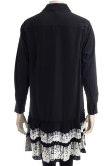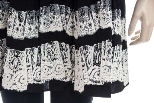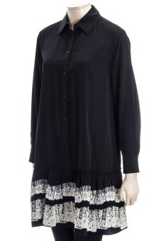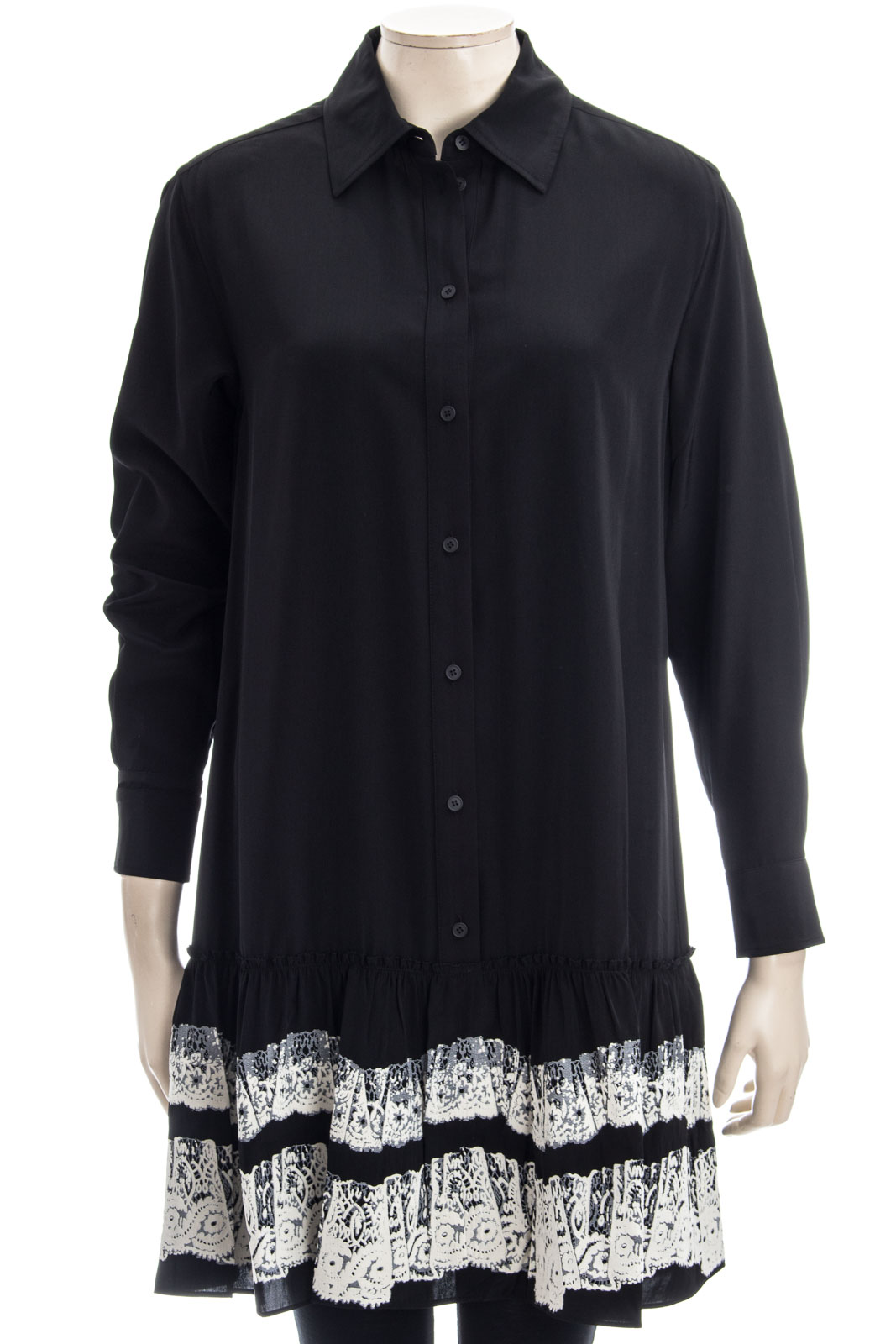 abgesetzt mit Spitze, Volant, hochgeschlossener Kragen