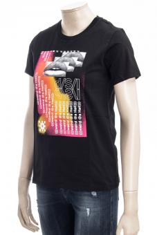 Rundhalsausschnitt, kurze Ärmel, monochrome Motive