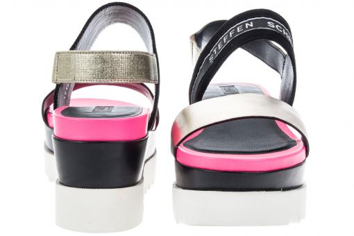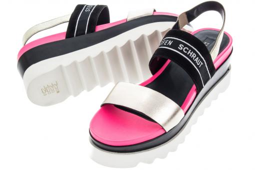 Leder in Metallic-Optik und Veloursleder, elastische Riemen, farblich kontrastierende Laufsohle, Sägezahn-Profilierung