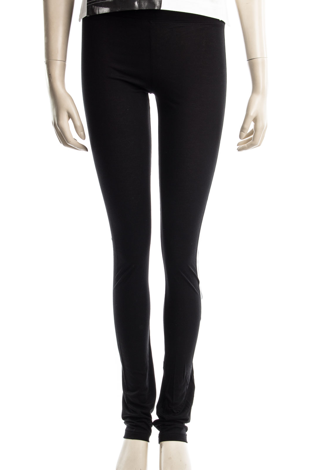 Sportliche Leggings mit weißem Streifen am Bein.