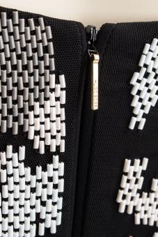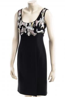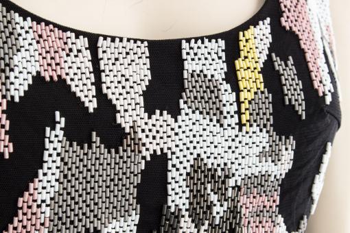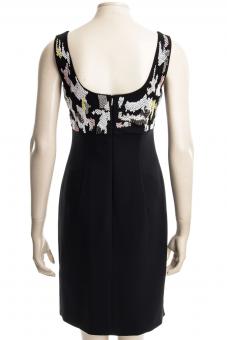 Schmall geschnittenes Etui-Kleid mit dekorativen Perlenbesatz im Brustbereich.