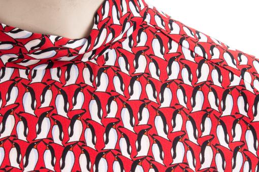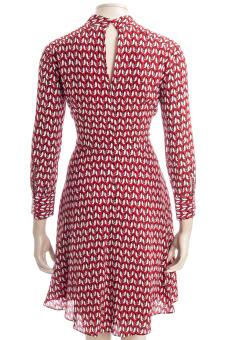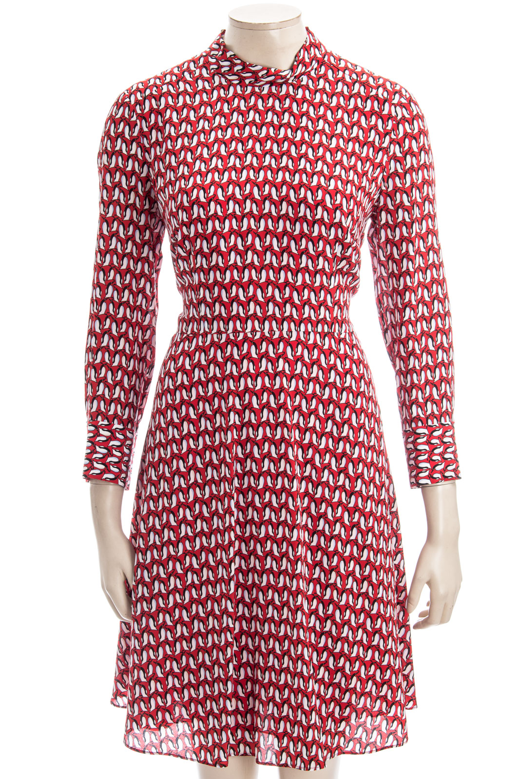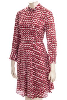 Tailliertes leicht fallendes Kleid mit Stehkragen.
