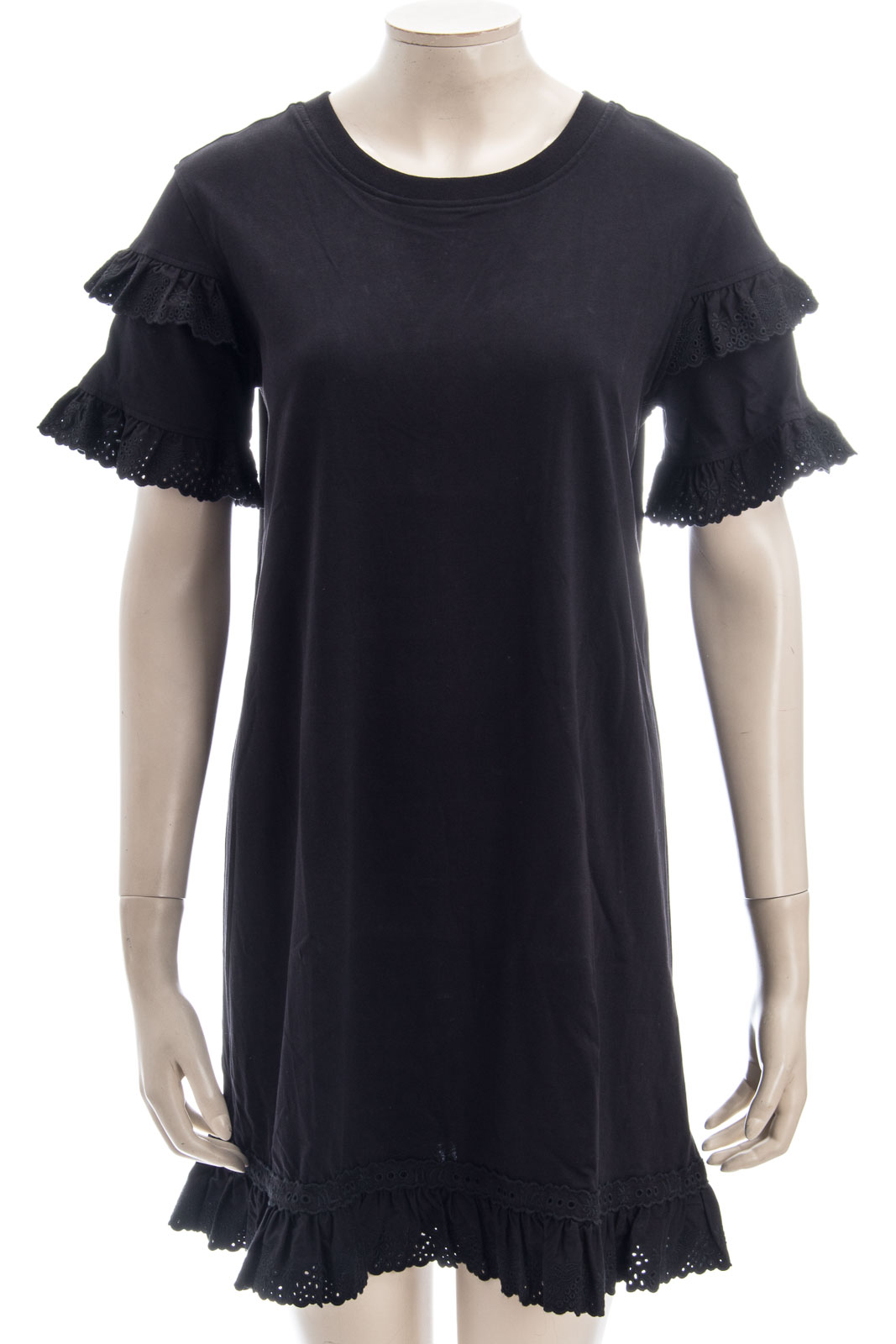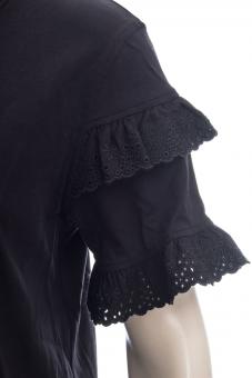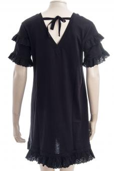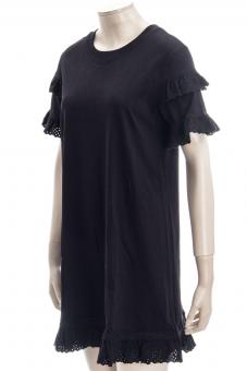 schwarzes T-Shirtkleid mit Einsätzen aus Lochstickerei