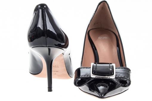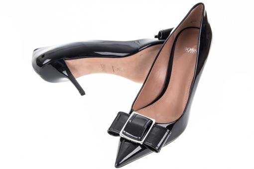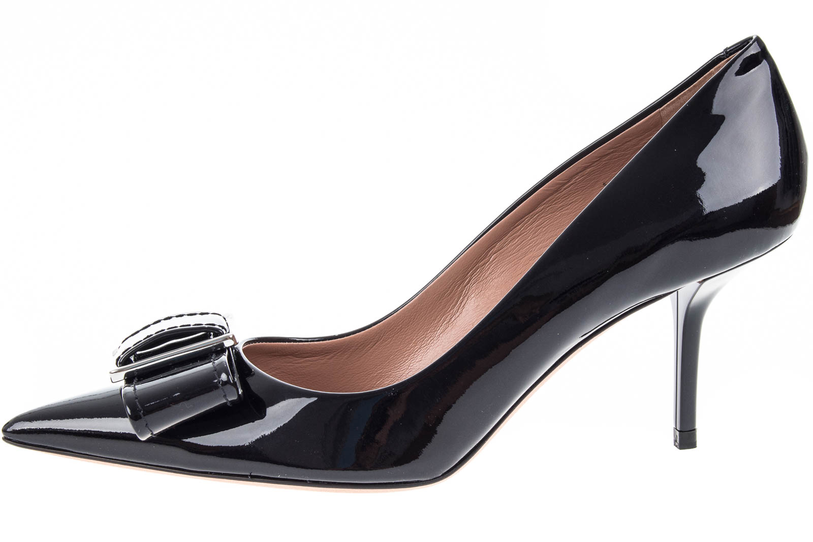 Pumps aus italienischem Lackleder mit Schleifenverzierung