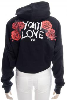 Kapuze mit weitenregulierbarem Kordelzug, Rippbündchen und teilweise gerippter Saum, Y-3 „Yohji Love“-Grafik mit aufgestickten Rosen auf der Rückseite