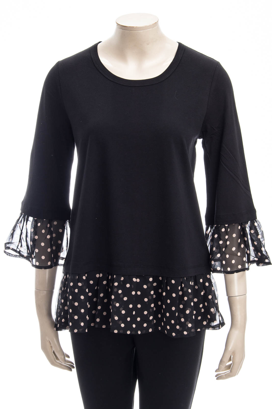 Shirt mit 3/4- Trompetenärmel und gerüschtem Saum